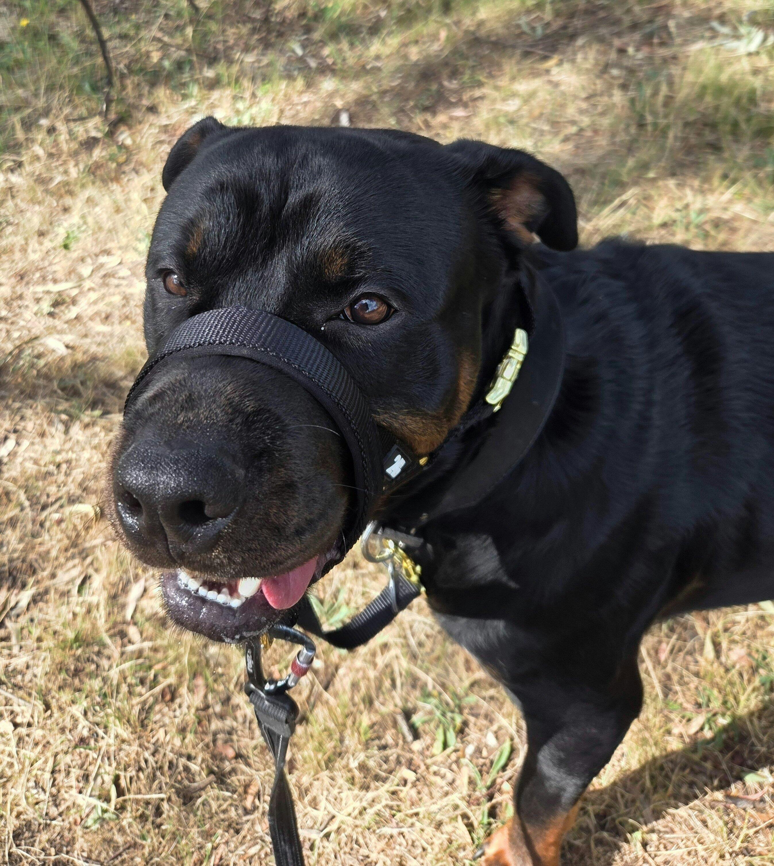 Just want to thank you guys again. Can’t say enuff about the service from you. Replaced our staffies halter after its clip broke. Ordered a medium as replacement after having a small but may look at going back to the small next time but still works well. He is still a sled dog from a past life🤣 but does heel from time to time. Meet Bullet. !!
