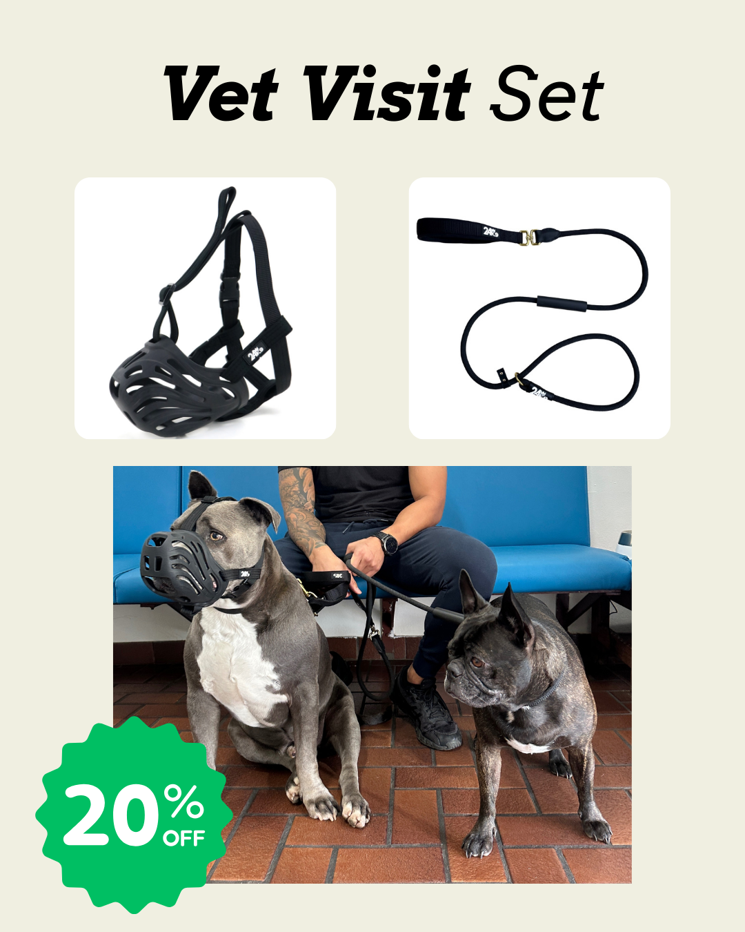For nervous dogs, reactive dogs, or dogs who struggle in overwhelming environments. This set turns stressful vet trips into safer, calmer moments for both of you.