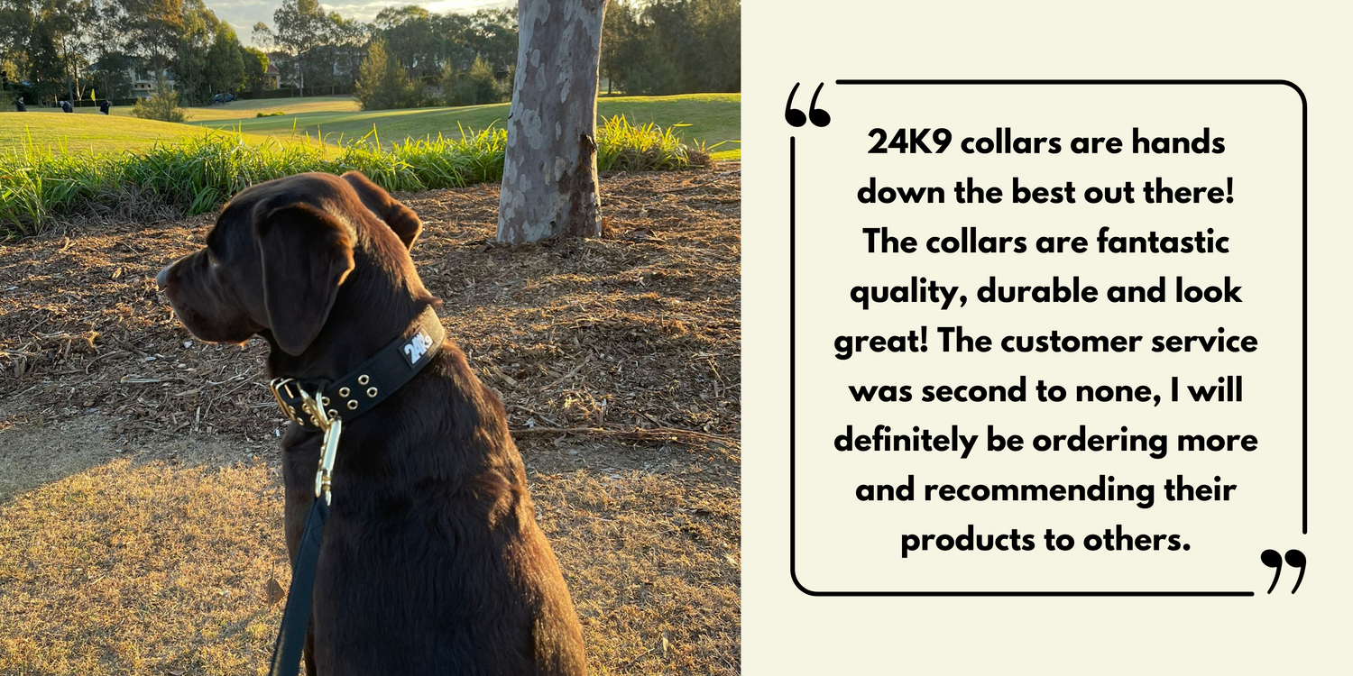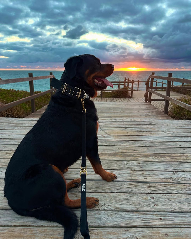The Kontrol Collar by 24K9 is everything you expect in a collar for your four-legged companion. The unique design, which includes triple polyester layers for durability and an interior with soft neoprene padding, provides comfort and control without sacrificing style. This collar also features gold stainless steel buckles that lock into place to ensure your dog's safety.