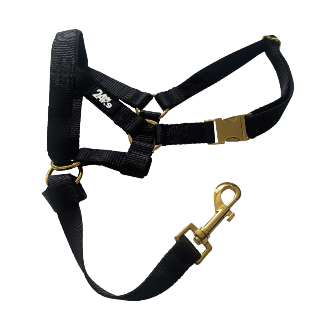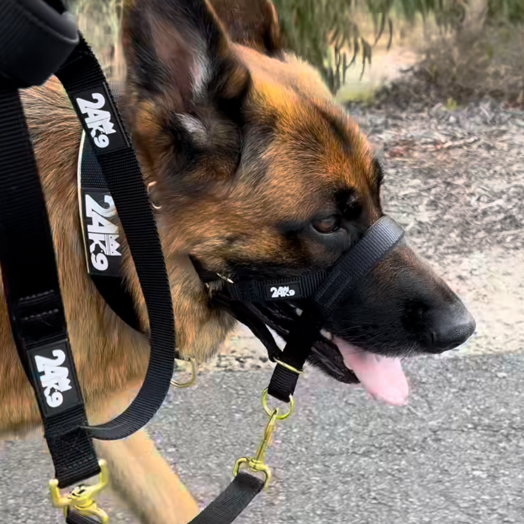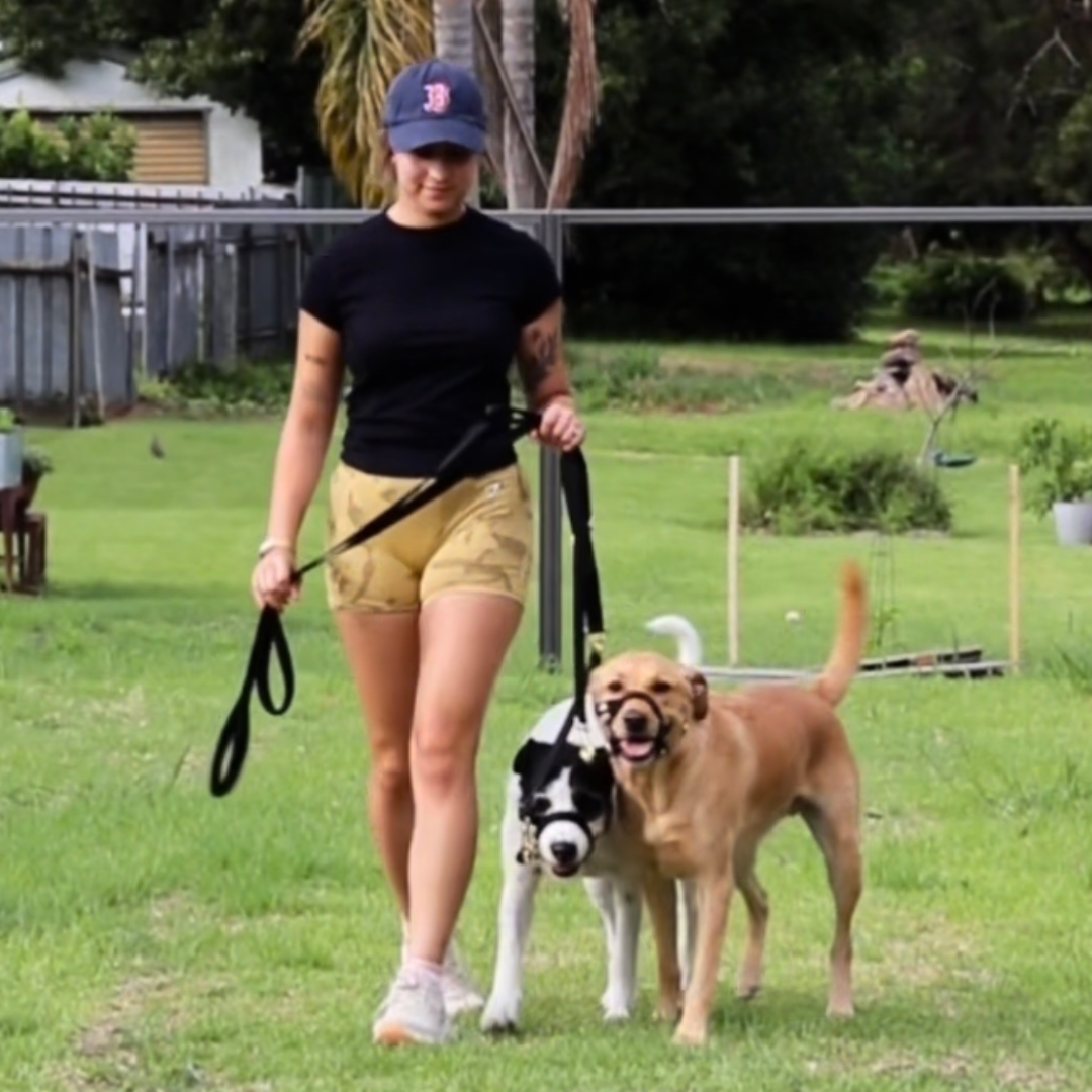 The Kontroller Head Halter is an effective dog training tool, designed to gently guide your dog's head, preventing undesirable behaviours such as pulling, jumping or lunging. It also helps you manage reactivity; redirecting your dog's attention towards you during challenging situations. A highly practical training tool for any dog owner looking to have more control and effortlessly improve their dog's leash manners. BONUS safety clip used to attach to your dog's collar.