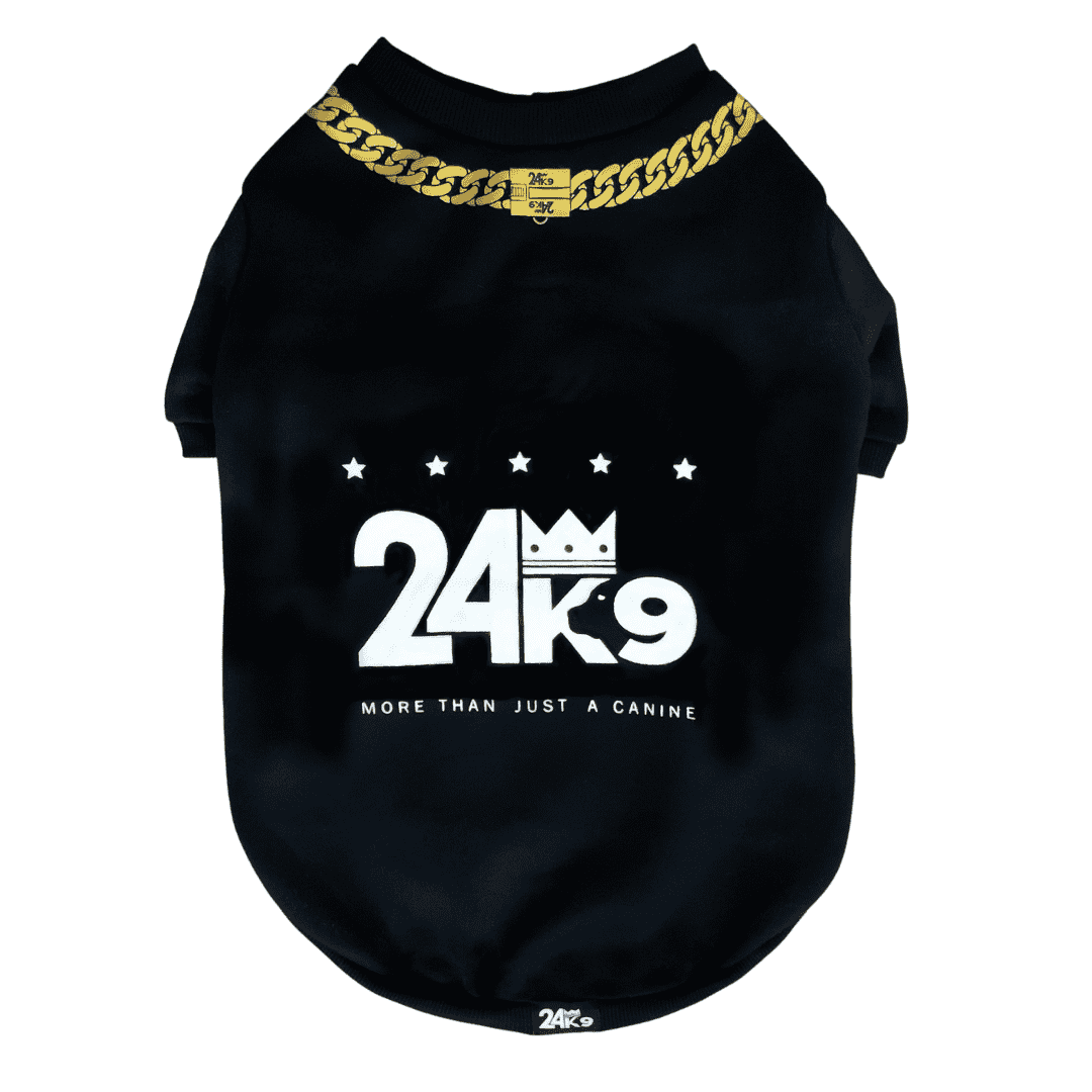 The Show Stopper Sweater designed by 24K9 is sure to keep your K9 warm and on trend this season. Featuring the iconic Show Stopper gold chain, the Show Stopper sweater is a signature piece that will quickly become essential for all dog wardrobes. It is available in 8 sizes, catering for most dog breeds.
